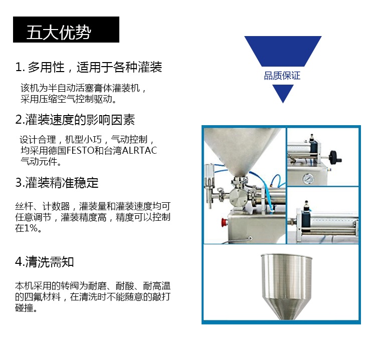 4.灌裝量和灌裝速度均可任意調(diào)節(jié),罐裝精度高。