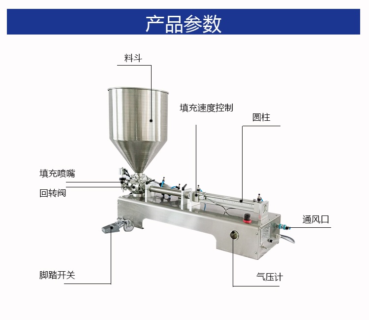 1.該機為半自動活塞膏體灌裝機。